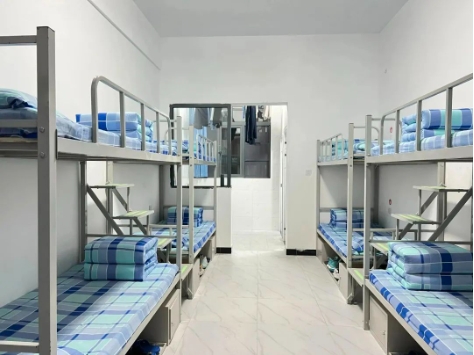 学生公寓分为8人间、6人间和4人间太空舱式木床,每间宿舍配备两个独立卫浴室,并设可同时供3人使用的洗漱台、提供中央空调、24小时热水等,为广大学生提供舒适优质的住宿环境。